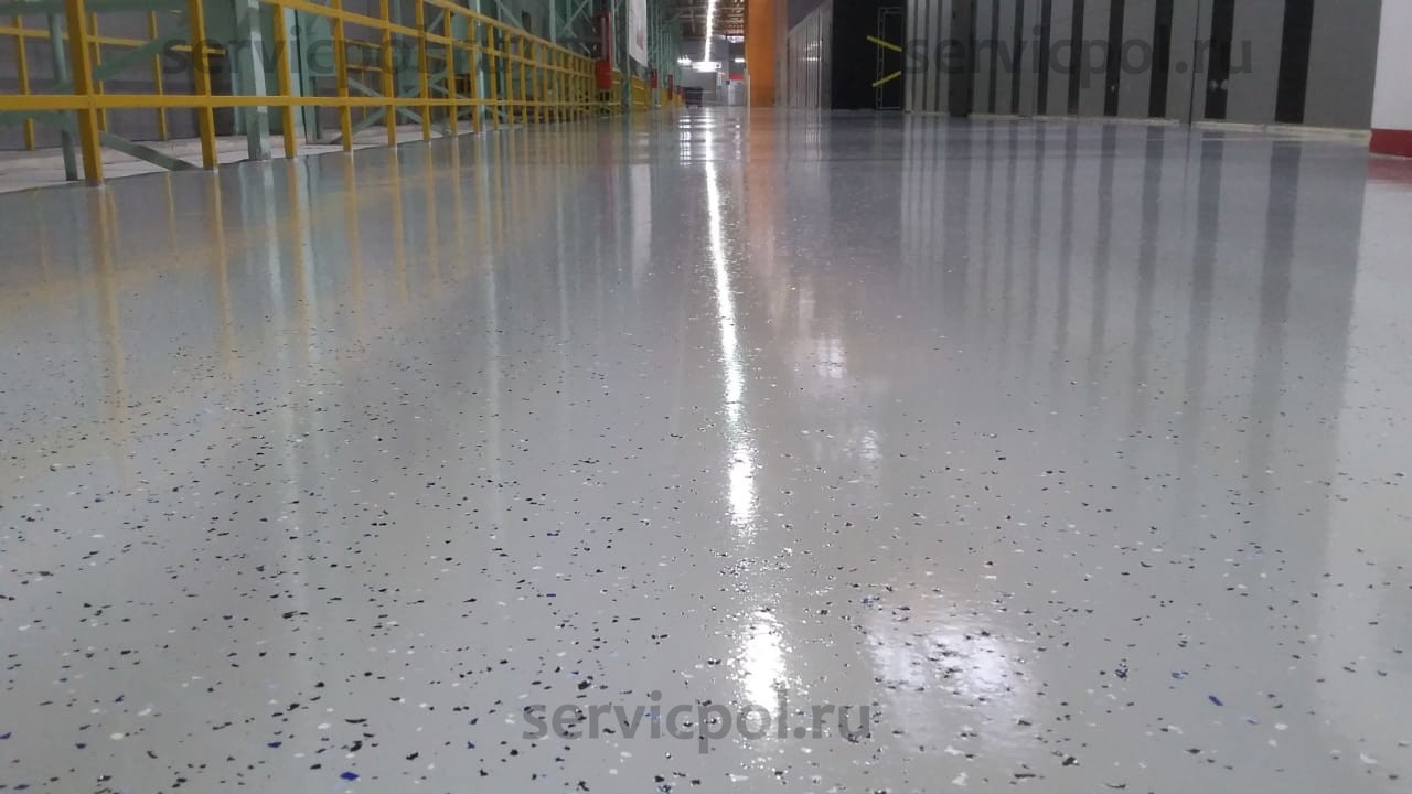 Чипсы представляют собой кусочки краски разнообразной формы, цветов и размеров. Наливные полы с чипсами отлично подходят для жилых, офисных, промышленных помещений, в которых хотят создать нейтральный дизайн пола либо цветовой акцент, сочетающийся с интерьером. Хороший вариант для заказчиков, не желающих ограничиваться однотонным покрытием.